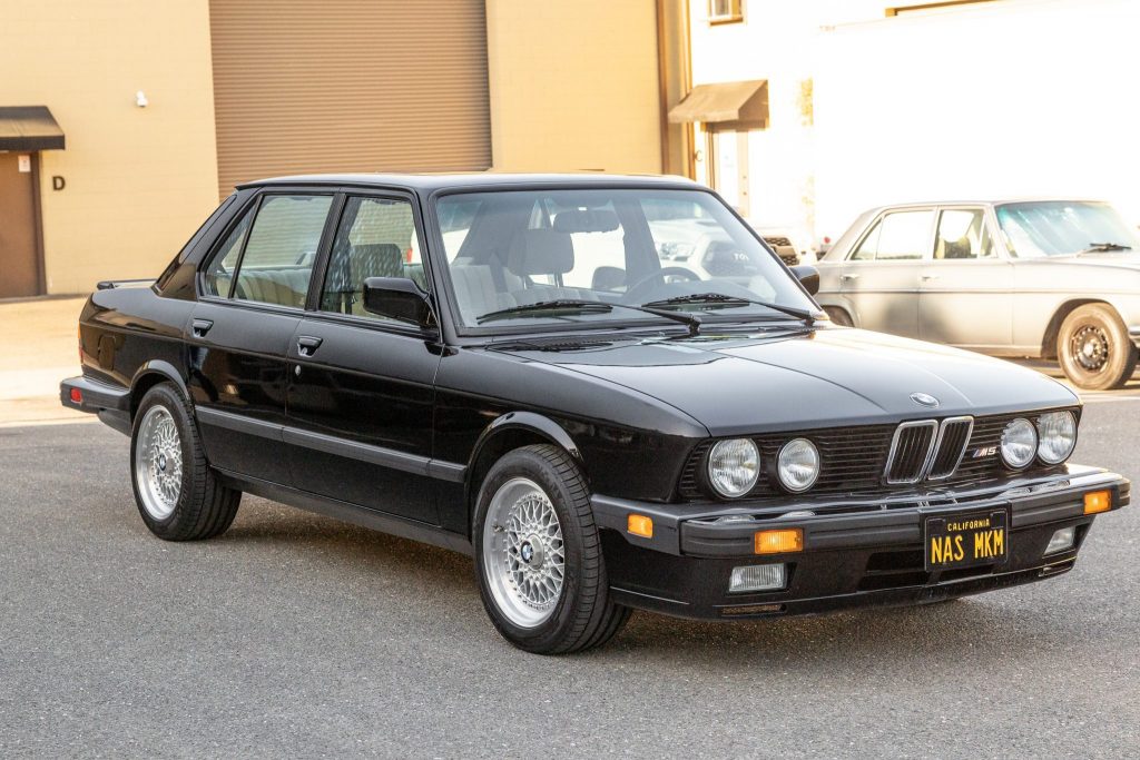 This 1988 BMW M5 is one of 1,340 examples produced for the North American market and is finished in black over tan leather. Power is provided by a 3.5-liter inline-six paired with a five-speed manual transmission, and equipment includes 16″ Style 5 wheels, heated sport seats, an electric sunroof, and an aftermarket ECU chip. The seller acquired the car out of Georgia in 2019, and work has since included an engine rebuild, reupholstered seats, a rebuilt power steering box, replacement springs, an overhaul of the front brakes, and more as outlined below.