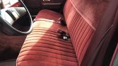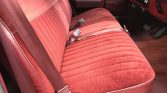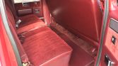 The seats are upholstered in red cloth with aluminum trim accenting the matching dashboard and door panels. Amenities include air conditioning, a third-row bench, cruise control, and power windows.