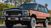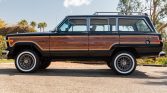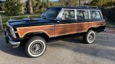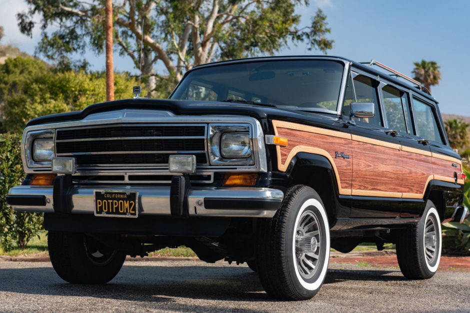 This 1988 Jeep Grand Wagoneer is finished in black with faux-woodgrain trim over tan upholstery, and power comes from a 360ci V8 paired with a three-speed automatic transmission and dual-range transfer case. Equipment includes 15″ aluminum wheels, Pro Comp dampers, a Howell electronic fuel-injection system, a roof rack, driving lights, air conditioning, power-adjustable front seats, and a Kenwood CD player. The truck was acquired by the seller in April 2016, and work since 2018 has included installation of the fuel-injection system, resurfacing the front rotors and rear drums, changing the oil, and replacement of the body and engine mounts, the crankshaft pulley and seal, the water pump, the power-steering pump, the carpets, and the headliner along with brake work and an air-conditioning overhaul.