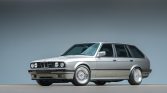 This 1989 BMW 325i Touring is a German-market example that was imported to the US in 2013. The car is finished in Salmon Silver Metallic over black leather and powered by a 3.2-liter S52 inline-six paired with a ZF six-speed manual transmission and a limited-slip differential. Equipment includes 16″ wheels, a sunroof, CATuned coilovers, European-market “smiley” headlights, heated sport seats, air conditioning, an M-Tech steering wheel, and a Kenwood head unit. Recent work consisted of changing the…
