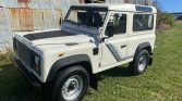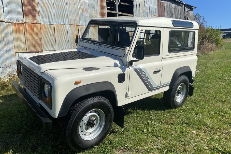 This 1989 Land Rover 90 is a left-hand-drive example that spent time in Italy before it was imported to the US in 2018, and it was acquired by the seller in June 2020. Finished in white over a gray interior, it is powered by a 2.5-liter turbodiesel inline-four mated to a five-speed manual transmission and a dual-range transfer case. Features include a locking center differential, alpine windows, a trailer hitch receiver, air conditioning, a cargo partition, and a Blaupunkt stereo. Work in 2021 included cleaning the brakes, service of the differentials, an oil change, and replacement of the fuel filter.