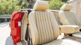 The body is finished in Signal Red (568) with contrasting pinstriping and chrome trim on the bumpers. Additional exterior equipment includes a black…
