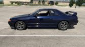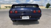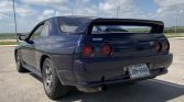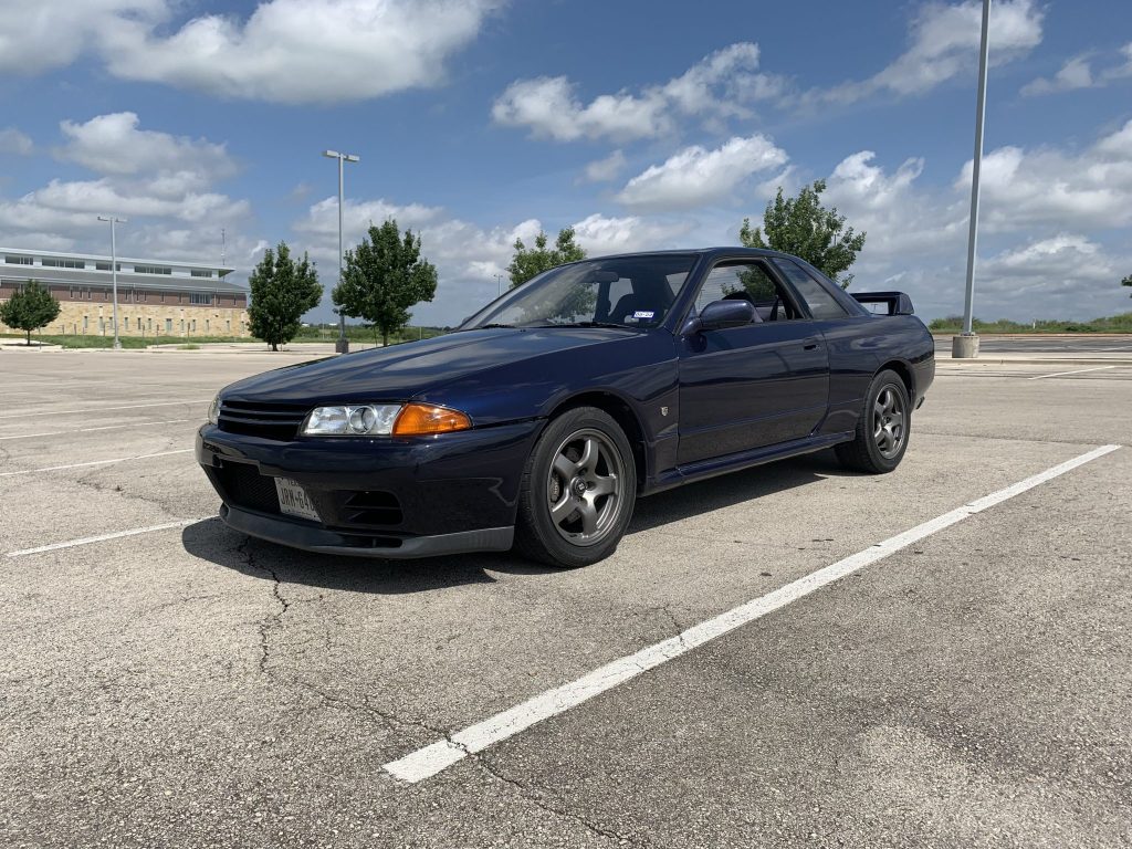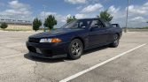 This 1989 Nissan Skyline GT-R is finished in Dark Blue Pearl over a gray interior and is powered by a twin-turbocharged 2.6-liter inline-six paired with a five-speed manual transmission and an all-wheel-drive system. Features include a turbo timer, a straight-pipe exhaust, a Nardi steering wheel, an aftermarket stereo, HICAS four-wheel steering, front and rear spoilers, cross-drilled brake rotors, and 16″ alloy wheels. The car was imported to the United States by the seller in 2017, and work has since included oil and coolant changes as well as replacement coil packs, valve cover gaskets, and hoses.