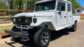 The extended cab features four doors, and the truck was refinished in white under previous ownership. Details include black bumpers, smoked turn signals, and a black plastic…