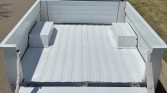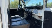 The six-place cabin features reupholstered black vinyl seats with contrasting white stitching along with a matching dashboard and door panels. Features include body-color sheet metal, a locking glovebox, footwell vents, a fire extinguisher, and custom vinyl floor liners.
