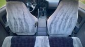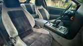 The interior features seats trimmed in gray cloth with patterned inserts along with dark gray carpets and a two-tone dashboard. Appointments include front bucket seats with adjustable thigh and lumbar support, air conditioning, cruise control, power windows and locks, and a premium six-speaker cassette stereo with a graphic equalizer and a CD player.