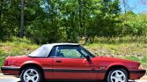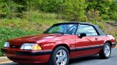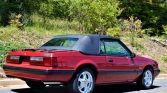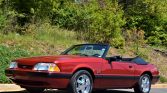This 1990 Ford Mustang LX 5.0 convertible is finished in Wild Strawberry over an Ebony cloth interior, and power is provided by a fuel-injected 5.0-liter V8 linked with a five-speed manual transmission and a limited-slip differential. Additional equipment includes a power-operated soft top, air conditioning, an AM/FM cassette stereo, a Flowmaster dual exhaust system, and chrome 16″ alloy wheels.