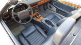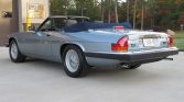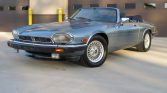 This 1990 Jaguar XJ-S convertible is finished in Diamond Blue Metallic over blue leather and is powered by a 5.3-liter V12 paired with a three-speed automatic transmission. Features include a blue soft top, later-style headlights, 15″ basketweave wheels, automatic climate control, cruise control, and a JVC CD stereo. The car is said to have remained with its original owner until it was acquired by the seller in July 2021, and subsequent service has reportedly included replacing the tires, air conditioning compressor, and hood struts.