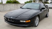 This 1991 BMW 850i is powered by a 5.0-liter V12 paired with a four-speed automatic transmission and is finished in black over a black leather interior. Equipment includes polished 18″ M-Parallel wheels, dynamic damper control, a sunroof, cruise control, automatic climate control, power-adjustable front seats, and a factory cassette stereo with a trunk-mounted CD changer. Services performed under current ownership have included performing front suspension repairs that included the replacement of bushings and control arms, rebuilding the air…