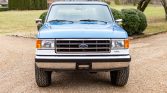 This 1991 Ford Bronco XLT has been registered in North Carolina since new and was acquired by the Tennessee-based seller in 2021. The truck is powered by a 5.0-liter V8 paired with a five-speed manual transmission and a dual-range transfer case and is finished in blue and white over a blue interior. Equipment includes a white removable hardtop, a power-operated rear window, cruise control, chrome aftermarket wheels, and a factory AM/FM cassette stereo. Work carried out by…