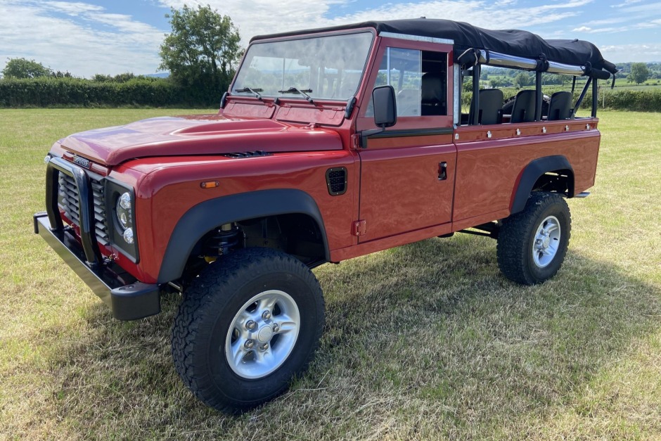 This 1991 Land Rover Defender 110 is a left-hand-drive example that spent time in the UK prior to being imported to the US by the seller in 2021. A beach runner-style refurbishment was subsequently performed, which included refinishing the frame, repainting the exterior in red, retrimming the interior in black upholstery, and overhauls to the suspension and braking systems. Power is provided by a 2.5-liter 200Tdi turbodiesel inline-four mated to a five-speed manual transmission and dual-range transfer…