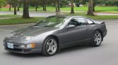 This 1991 Nissan 300ZX Twin Turbo is finished in Charcoal Pearl over Charcoal leather and is powered by a twin-turbocharged 3.0-liter V6 paired with a four-speed automatic transmission and a limited-slip differential. Equipment includes projector headlights, 17″ alloy wheels, Super HICAS four-wheel steering, removable glass roof panels, a rear spoiler, a rear wiper, automatic climate control, cruise control, a Kenwood CD stereo, and power windows.