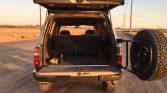Twelve-hole 15″ wheels feature polished lips and wear 33×10.50″ BFGoodrich All-Terrain T/A tires that were reportedly mounted within the past year. Old Man Emu shocks and springs were added under current ownership along with a replacement steering stabilizer. Scratches are visible on the faces of the wheels.