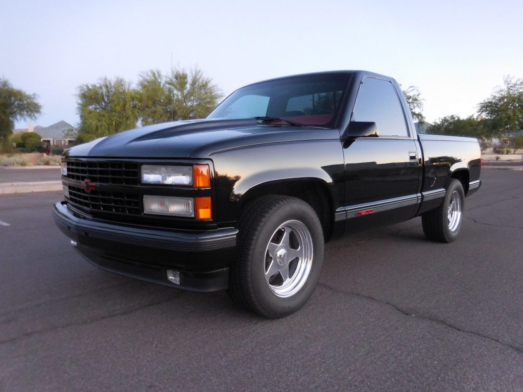 …This 1992 Chevrolet 454 SS pickup was purchased new by the seller from Stevinson Chevrolet of Englewood, Colorado, and is powered by a 454ci V8 fitted with a Whipple supercharger, an UltraDyne camshaft, Edelbrock headers, and a Borla exhaust system. The truck is finished in black over red cloth, and additional equipment includes a four-speed automatic transmission, a limited-slip differential, a Goodmark cowl-induction hood, 17″ Boyds billet wheels, suspension updates, and a Delco cassette stereo.