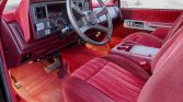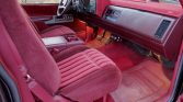 The interior features Garnet Red cloth bucket seats with a matching dashboard, door panels, carpeting, and floor mats. Amenities include air conditioning, a Delco cassette stereo with an iPod connection, an UNGO alarm system, a tilt steering column, cruise control, power accessories, and a center console. The seller notes that the headliner and sun visors were replaced in May 2021.