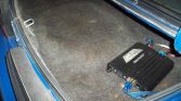Silver-finished 15″ wheels are mounted with Goodyear Eagle GT white-letter tires, and the car is equipped with front disc and rear drum brakes.