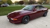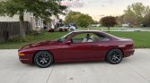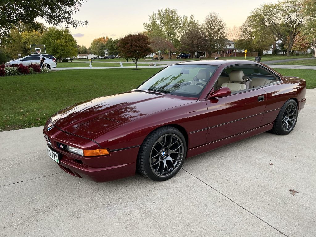 This 1993 BMW 850Ci is finished in Calypso Red Metallic over Parchment leather and is powered by a 5.0-liter V12 paired with a four-speed automatic transmission. Features include pop-up headlights, a power sunroof, dual-zone automatic climate control, power-adjustable heated front seats, cruise control, and a factory cassette stereo with a trunk-mounted CD changer. A repaint was reportedly performed in 2015, and modifications consist of a CSi-style body kit, 18″ Apex wheels, lowering springs, and Wokke Performance chips. Work under current ownership reportedly included repairing the alarm system, correcting a Pentosin leak, installing two new batteries and a CD storage unit, refinishing the leather seats, replacing the glovebox flashlight, and refurbishing the tool kit.