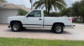 Chrome 15″ steel wheels are mounted over 1.5″ spacers and wear 275/60 Gran Prix Performance GT tires. All 454 SS trucks were equipped with the Performance Handling Package which included a 32mm front sway bar, a 12.7:1 steering ratio, and Bilstein shock absorbers. The anti-lock braking system features front discs and rear drums.