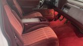 The interior features Garnet Red cloth bucket seats with a matching dashboard, door panels, carpeting, and floor mats. Amenities include air conditioning, a cassette stereo with a graphic equalizer, a tilt steering column, cruise control, power accessories, and a center console.