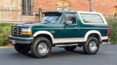 This 1993 Ford Bronco is an Eddie Bauer example that is finished in two-tone metallic green and beige over beige cloth upholstery. Power is provided by a replacement 302ci V8 paired with a four-speed automatic transmission and a dual-range transfer case. Equipment includes a removable fiberglass hardtop, 15″ alloy wheels with 35″ tires, lifted suspension, air conditioning, front captain’s chairs, and a JVC stereo. The truck was first registered in New Jersey and later spent time in…