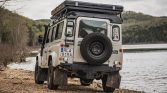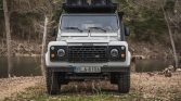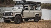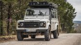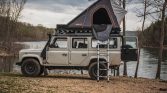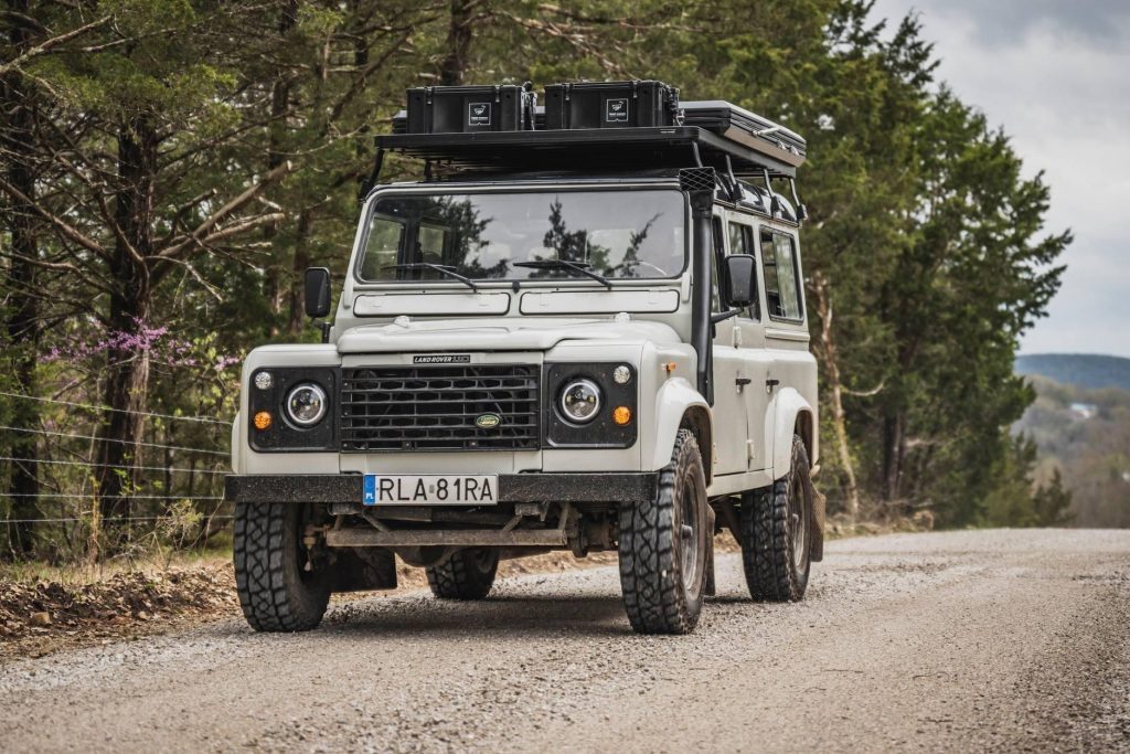 This 1993 Land Rover Defender 110 is a left-hand-drive model that was purchased by the seller out of Poland before it was refurbished by Autology Motors of Alicante, Spain, in 2019. It was imported to the US in 2020. The truck is finished in gray with a black top over black leather upholstery, and power comes from a 2.5-liter 200Tdi inline-four paired with a five-speed manual transmission and a dual-range transfer case. Equipment includes a Front Runner Slimline II roof rack, a Roofnest XL hardshell pop-up camper, 16″ Wolf steel wheels, LED lighting, and an intake snorkel.