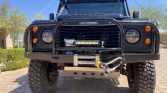 This 1993 Land Rover Defender 110 is number 143 of 500 North American Specification examples imported to the US for the model year. It is finished in black over black and is powered by a 2.8-liter TGV turbodiesel inline-four with an upgraded turbocharger paired with a five-speed manual transmission, dual-range transfer case, and an ARB locking differential. Equipment includes a front brush guard, front skid plate, winch, bead lock wheels, Fox external-reservoir shocks, a snorkel intake system,…