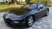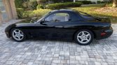This 1993 Mazda RX-7 is finished in black over tan leather and is powered by a replacement twin-turbocharged 1.3L rotary engine paired with a five-speed manual transmission and a limited-slip differential. Factory equipment includes 16″ alloy wheels, a power sunroof, leather seats, and air conditioning, while modifications consist of a GReddy turbo timer, a Racing Beat exhaust system, and Pettit Racing suspension components along with an aftermarket air intake, intercooler, radiator, and engine mounts. Maintenance performed under current ownership included fluid changes along with a replacement windshield, antenna, battery, air filter, fuel filter, spark plugs, and ignition wires.