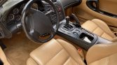 The seats are upholstered in tan leather and joined by matching carpets and door panels along with a contrasting black dash and center console. Additional interior equipment includes a GReddy turbo timer installed in the glove box, cruise control, drilled aluminum pedals, and power windows and door locks. The air conditioning system was overhauled in 2019 including installation of a replacement compressor, drier, evaporator core, and expansion valve.