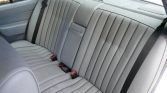 The cabin features power-adjustable front seats and a rear bench upholstered in gray MB-Tex (178) that extends to the center armrest and door panels along with matching carpets and a contrasting black dashboard. Wood trim adorns the center stack, and additional features include automatic climate control, cruise control, an AM/FM cassette stereo, in-dash cassette storage, central locking, and power windows.