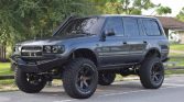 This 1993 Toyota Land Cruiser FZJ80 was refurbished in Colombia prior to its importation to the US in August 2019. The work included a repaint and reupholstery of the interior in leather as well as installation of Fox shocks, a snorkel, a 3″ stainless-steel exhaust system, custom bumpers, and LED lights. Power is from a 4.5-liter 1FZ-FE inline-six that is said to have rebuilt using performance pistons, Ferrea valves and springs, and a Crower cam kit. The truck is…