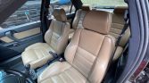 The cabin features power-adjustable heated front seats upholstered in tan leather and joined by matching door panel inserts along with a black dash, center console, and carpets. Amenities include a factory cassette stereo with a flip-up cover, a trunk-mounted six-disc CD changer, cruise control, and Alfa Romeo-branded floor mats.