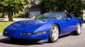 This 1994 Chevrolet Corvette coupe is finished in Admiral Blue over light gray leather and is powered by a 5.7-liter LT1 V8 paired to a six-speed manual transmission. Equipment includes a blue-tinted removable roof panel, the Selective Ride and Handling suspension, automatic climate control, 17″ ZR-1-style wheels, power-adjustable sport seats, a Delco-Bose stereo, and an aftermarket catback exhaust. The car was first registered in Tennessee and spent time in Georgia, Illinois, and Michigan before it was acquired…
