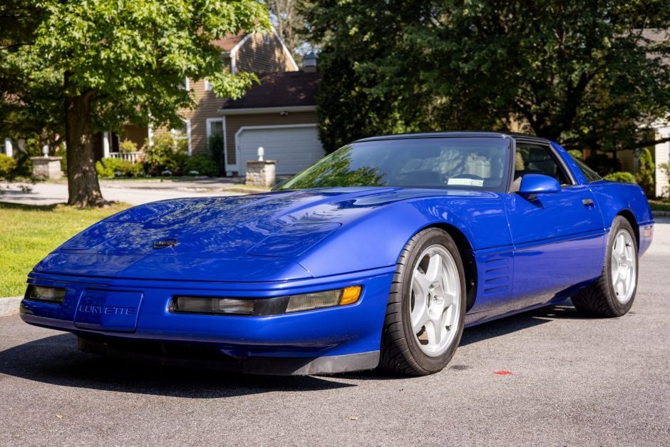 This 1994 Chevrolet Corvette coupe is finished in Admiral Blue over light gray leather and is powered by a 5.7-liter LT1 V8 paired to a six-speed manual transmission. Equipment includes a blue-tinted removable roof panel, the Selective Ride and Handling suspension, automatic climate control, 17″ ZR-1-style wheels, power-adjustable sport seats, a Delco-Bose stereo, and an aftermarket catback exhaust. The car was first registered in Tennessee and spent time in Georgia, Illinois, and Michigan before it was acquired by the seller in New York in April 2021.