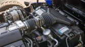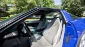 The fiberglass body is finished in Admiral Blue and features a blue-tint removable roof panel. Additional features include pop-up headlights, fog lights, heated mirrors, a power antenna, and quad exhaust outlets.