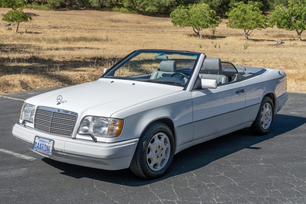 This 1994 Mercedes-Benz E320 cabriolet reportedly spent time with one family in New Jersey and California before the seller’s acquisition in 2018. The car is finished in Polar White over gray leather and is powered by a 3.2-liter inline-six paired with a four-speed automatic transmission. Additional equipment includes a black convertible soft top, automatic climate control, an AM/FM cassette stereo, cruise control, power-adjustable heated front seats, traction control, a wind deflector, headlight wipers, and 15″ alloy wheels.…