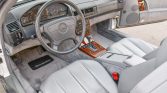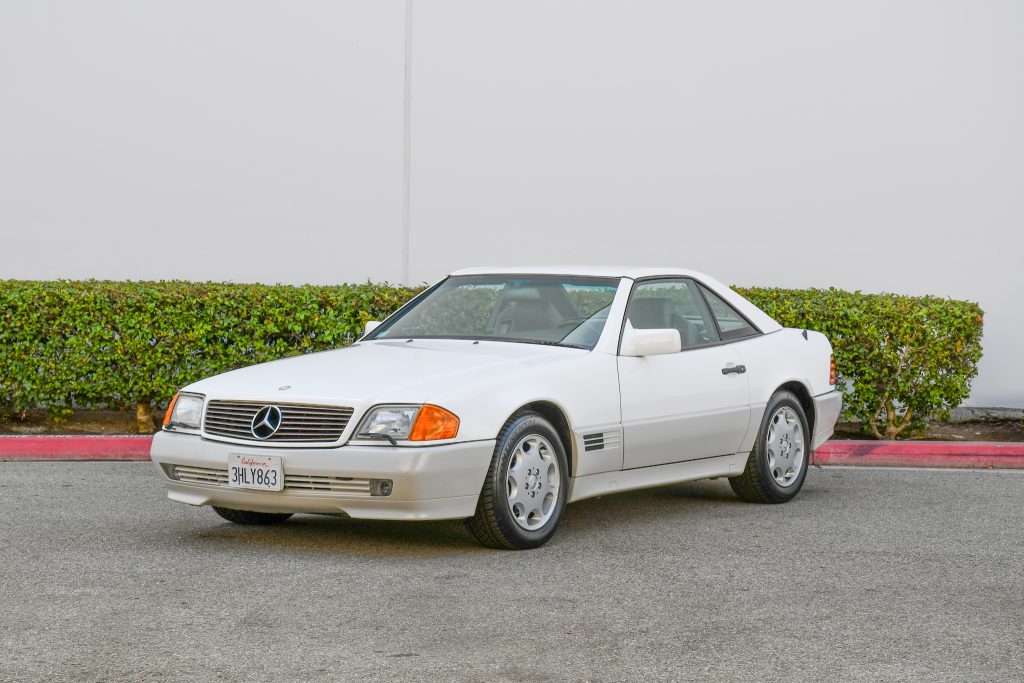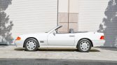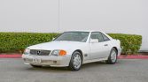 This 1994 Mercedes-Benz SL500 is finished in Polar White over gray leather and is powered by a 5.0-liter V8 paired with a four-speed automatic transmission. Equipment includes a removable body-color hardtop, a black soft top, automatic climate control, a Bose sound system, fog lights, and 16″ eight-hole alloy wheels.