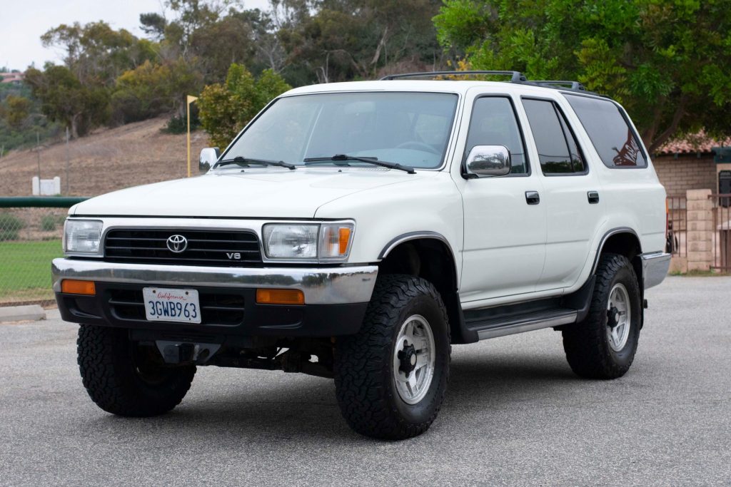 This 1994 Toyota 4Runner SR5 has been registered in California since new and was acquired by the seller from a family member in 2013. Finished in white over gray cloth, the truck is powered by a 3.0-liter V6 paired with a five-speed manual transmission. Features include 15″ alloy wheels, chrome accent trim, running boards, a roof rack, a rear wind deflector, air conditioning, an AM/FM stereo, and power accessories. Service under current ownership is said to include servicing the rear differential, performing an alignment, and replacing the front axles.