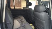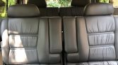 The cabin is upholstered in gray leather with matching door panels and carpets. The front seats are power-adjustable, and additional amenities include air conditioning, cruise control, power accessories, keyless entry, remote start, third-row seating, and a Pioneer touch-screen stereo with navigation.