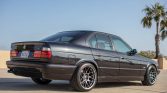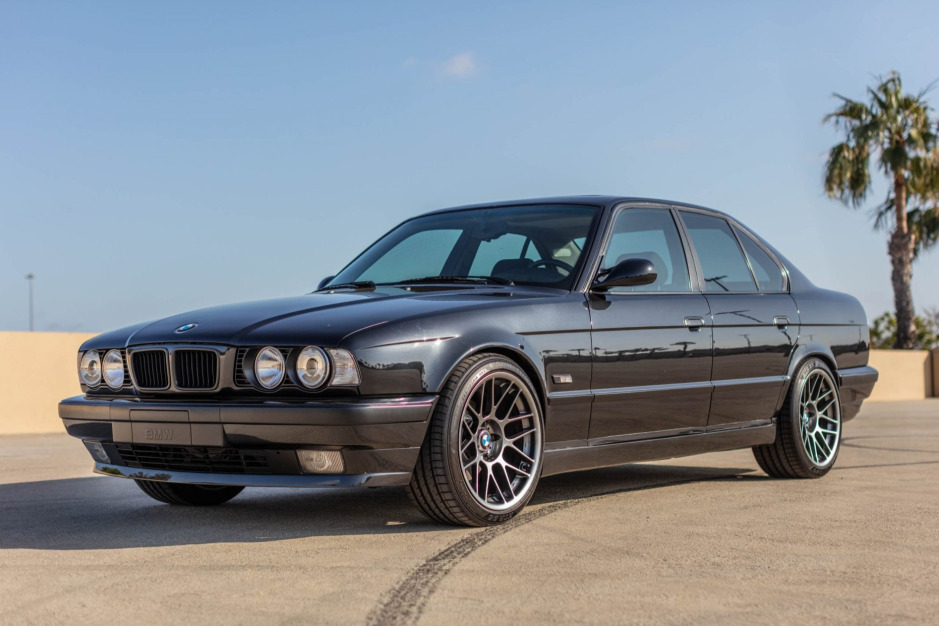 This 1995 BMW 540i is finished in Cosmos Black over black leather and is powered by a 4.0-liter V8 paired with a six-speed manual transmission. Equipment includes 18″ APEX wheels, Koni shocks, H&R springs, a sunroof, dual-zone automatic climate control, power-adjustable fronts seats, an aftermarket Pioneer CD stereo, Morel speakers, Zapco amplifiers, and a D’Sylva E.A.T. performance chip. The current owner acquired the car in 2019 and has since added approximately 700 of the 141k miles shown. Service during current ownership is said to have included the replacement of the transmission, clutch, pressure plate, water pump, cooling system components, gaskets, and seals.