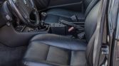 The cabin features seats upholstered in black leather with matching door panels and burl wood trim adorning the dashboard and doors. Interior amenities include dual-zone automatic climate control, power-adjustable fronts seats with memory settings for the driver, an onboard computer, cruise control, BMW-branded floor mats, and an aftermarket Pioneer CD stereo with Morel speakers, a Morel Primo subwoofer, and Zapco amplifiers.