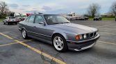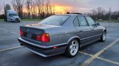 This 1995 BMW 540i is finished in gray over black leather and is powered by a 4.0-liter V8 paired with a five-speed automatic transmission. Equipment includes M-Sport bumpers and side mirrors, 17″ Style 21 wheels, Eibach lowering springs, a sunroof, power-adjustable and heated front seats, dual-zone climate control, an onboard computer, an AM/FM cassette stereo, and a trunk-mounted six-disc CD changer. The seller acquired the car in 2020 and has since added approximately 400 of the 99k…