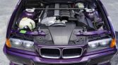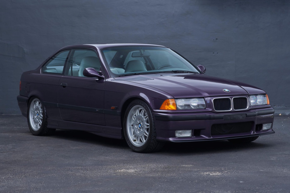 This 1995 BMW M3 Coupe is finished in violet over gray leather and powered by a 3.0-liter straight-six paired with a five-speed manual transmission. Features include M-specific bodywork, a sunroof, air conditioning, cruise control, a carbon fiber shock tower brace, a stereo with a remote CD changer, Koni adjustable shocks, Eibach springs, an Active AutoWerke exhaust system, and 17″ alloy wheels. Maintenance performed in preparation for the sale included servicing the air conditioning system and replacement of the driveshaft flex disc, fuel filter, cabin filter, battery, tires, exhaust gaskets, wheel well liners, and engine and transmission mounts.