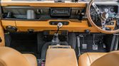 The interior upholstery was re-trimmed in tan vinyl with a matching refurbished locking center console and door panels along with aluminum trim accents. The refurbishment included refinished interior panel paint and the installation of a Bluetooth-compatible Boss audio system. The headliner was reportedly replaced under current ownership.