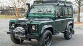 This 1995 Land Rover Defender 90 is a right-hand drive example that was imported in 2020 and acquired by the seller in March 2021, after which it underwent interior refurbishment at Rover Land of Dawsonville, Georgia. The truck is powered by a 2.5-liter 300Tdi inline-four mated to a five-speed manual transmission and a dual-range transfer case and was repainted in green with black trim over a tan vinyl upholstery. Features consist of a locking center differential, a…