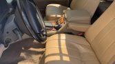 The cabin features seats reupholstered in tan leather along with matching carpets and door panels and a black dashboard. Amenities include power locks and windows, wood trim, a Sony touchscreen stereo, and air conditioning. The seller notes that the headliner has been replaced, and the seat heaters are disconnected. Recent service includes the installation of a replacement rear amplifier and wiring. Corrosion can be seen under the carpet in the passenger footwell and rear cargo area.