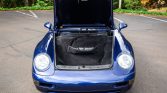 The car was finished from the factory in Iris Blue Metallic (L39V) and has been repainted, a process that also included replacing the body seals and removing the basket-handle rear spoiler. Other changes include Bergvill LED headlights, smoked lighting lenses, front brake ducts in place of fog lamps, and “911” rear badging.