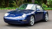 This 1995 Porsche 911 Carrera coupe wears a repaint in Iris Blue Metallic over a Marble Grey, Midnight Blue, and black interior, and it is powered by a 3.6-liter flat-six that has been fitted with a Steve Wong ECU chip. The car was specified with a six-speed manual transaxle and a limited-slip differential, and additional equipment includes an FD Motorsports Golden Rod kit, a lightweight flywheel, 18″ Turbo Twist wheels, M033-specification springs, Koni shocks, Walrod control arm bushings, LED…