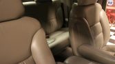 The interior features high-back bucket seats upholstered in neutral leather with matching plastics, carpets, and rubber floor mats. Amenities include air conditioning, power aLessories, remote keyless entry, a power-adjustable driver’s seat, and an AM/FM/CD stereo with premium sound.