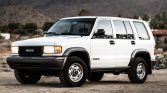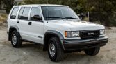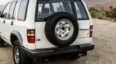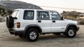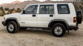 This 1996 Isuzu Trooper is finished in white over gray cloth, and it is powered by a 3.2-liter V6 paired with a five-speed manual transmission and a dual-range transfer case. Equipment includes a rear-mounted spare wheel and tire, a receiver hitch, a vertical-split tailgate, steel wheels, air conditioning, cruise control, power aLessories, and a digital AM/FM/cassette stereo. The truck was reportedly purchased new at Royal Isuzu of Tucson, Arizona, and remained in the state with its first owner…