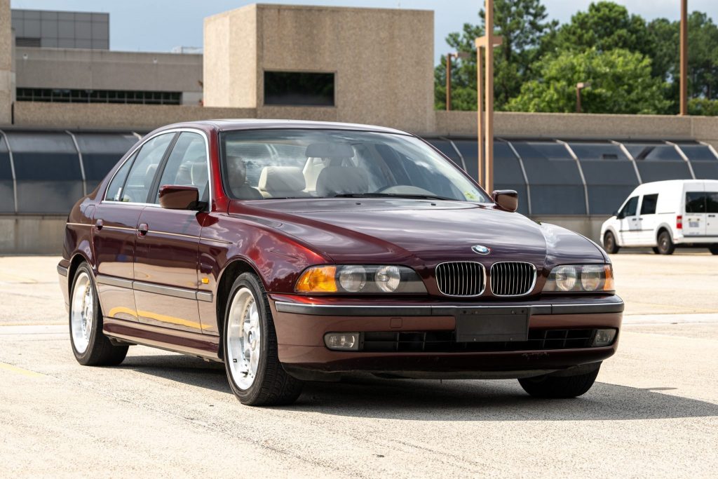 This 1997 BMW 540i was delivered new to Midwestern BMW in Dublin, Ohio, and has resided with the seller in South Carolina, Florida, and North Carolina since new. The car is finished in Canyon Red Metallic over Sand Beige Montana leather, and power comes from a 4.4-liter V8 paired with a six-speed manual transmission. Additional equipment includes 17″ Style 19 wheels, M Sport Suspension, an electric sunroof, automatic climate control, a heated steering wheel, and power-adjustable heated…